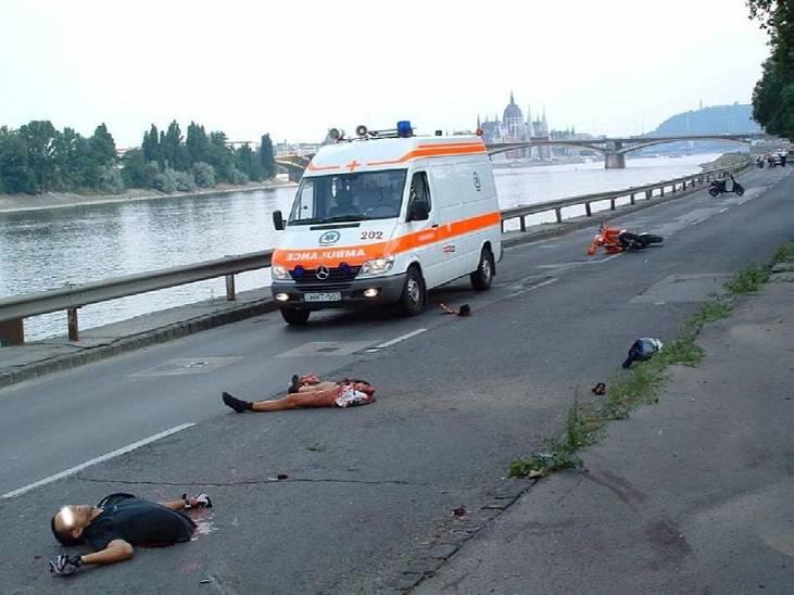 MOTORCYCLE VS POLE , BUDAPEST - HUNGARY