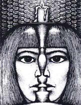 5.two horses,a woman's face a bird