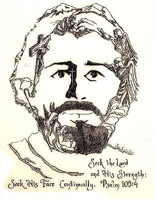 8. 7 people,a mans face,jesus on the cross ,a bull ,mountains