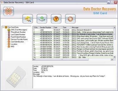Sim Card Data Recovery Software recovers your mobile phone sim card accidentally deleted text SMS messages. Data Doctor Sim Card Recovery Software is read only and non-destructive utility restore all lost message. Utility retrieve all deleted contact numbers (phone numbers), unreadable messages, corrupt phone book directory. It provides full backup of your cell phones erased sim memory.