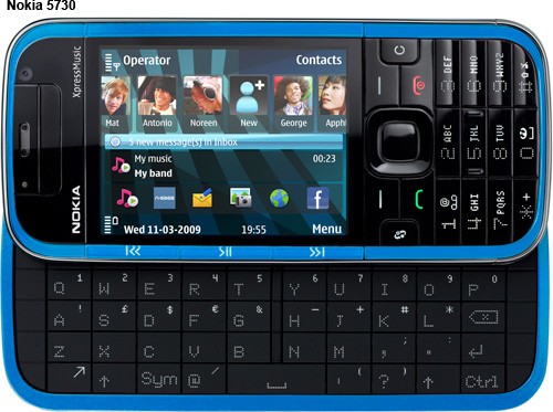 Nokia 5730 XpressMusic The Nokia 5730 XpressMusic is Nokia's first music-optimized device to offer a full QWERTY keyboard - ideal for quick messaging. The heart of this music device is the Homescreen for XpressMusic, providing access and dynamic information on music, people, games, email and calendar.The Homescreen features an improved contacts bar with up to 20 friends and family members and provides direct access to music, N-Gage and other applications, like Facebook, Photos, Ovi Contacts, Maps, messaging and more. With Ovi Contacts, people see which friends are online, chat and even view what music they are listening to.