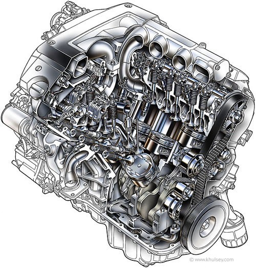 A V engine is a common configuration for an internal c****ustion engine. The cylinders and pistons are aligned, in two separate planes, so that they appear to be in a "V" when viewed along the axis of the crankshaft. The V configuration generally reduces the overall engine length, height and weight compared to an equivalent inline configuration. Various angles of V are used in different engines; depending on the number of cylinders, there may be angles that work better than others for stability. Very narrow angles of V c****ine some of the advantages of the V engine and the straight engine (primarily in the form of compactness) as well as disadvantages; the concept is an old one pioneered by Lancia , but recently reworked by Volkswagen.