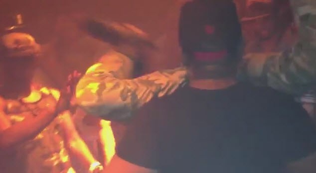 Before 19 seconds into the video, the controversial DJ made his appearance by running on to a stage chasing off patrons. "Hol' on deh! Mi a do sumn yah suh! Sorry deh! Sorry deh," he said while pushing three men off the stage to create enough room.