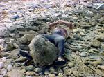 This gentleman of the drug smuggling trade was bound with rope, duct taped, dropped off a cliff, and spent some quality time in the water afterwards. The person who discovered the body took these photographs before police arrived, and sent them to us.