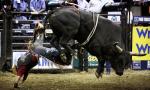Three-time Professional Bull Riding tour champion Adriano Moraes falls off Mataska during the PBR's Des Moines Classic, in Des Moines, Iowa, on May 3. Moraes, 38, announced in January that this will be his last season in the PBR. The charismatic, Brazilian-born Moraes acknowledges the decision to retire from the sport that has defined him was a tough one.