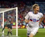 Wayne Rooney and Carlos Tevez worked hard but could not break down the Russian side, who sealed a memorable victory.