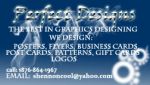 Perfect Designs we design posters, gift cards, patterns, flyers, business cards, post cards, logos ect. we also do photo re-touching. call us at 1876-864-1967 or email at shennoncool@yahoo.com